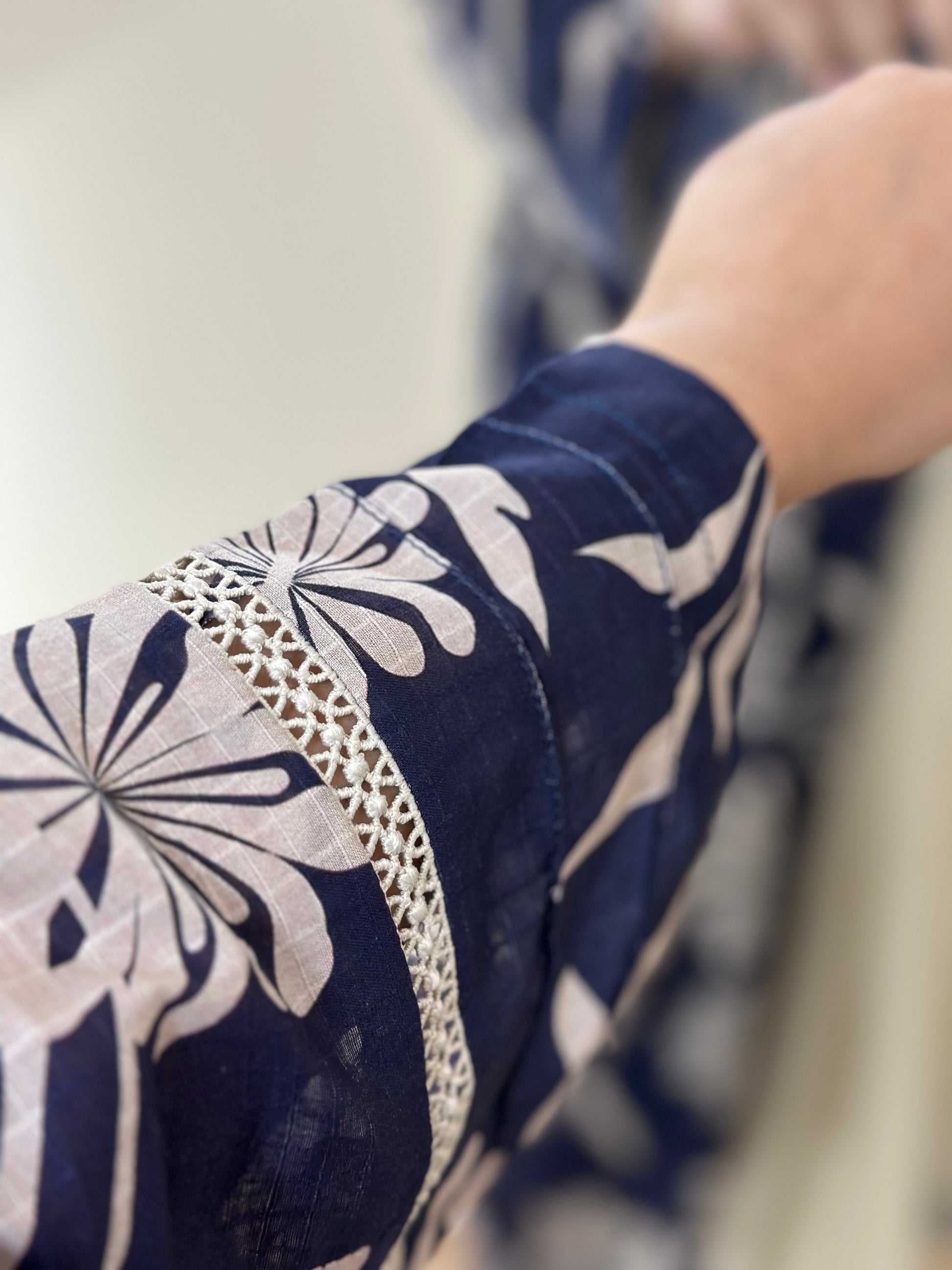 Shirt – Premium Pure Lawn Printed Shirt with elegant Lace Neckline And Also Bazu Joinder Lass Work.